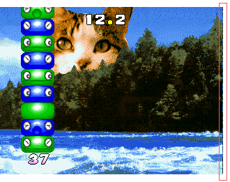 For foreground, I think you meant: m_fg_tilemap->set_scrolldy(1, 0); (2nd param is for flipscreen) The tiles for the control panel with the 3 white holes in it, where sprites for the r/g/b buttons go on top, are used for both the bg and fg layer. So if you tweak the bg layer by 1 pixel, the fg layer needs to move the same way. Otherwise the 2 layers are not aligned with eachother and the sprite buttons on the cpanel will be placed 1 pixel off. But if you do that, you will get glitches elsewhere on the other edge of the screen. I think the driver author picked what looks best overall. |
