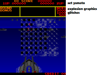 For the crash: 1. Insert Credits 2. Press Player 1 button 3. Crash. For the explosion graphics handling bug: 1. Wait around attract mode until a ship explodes 2. Explosion graphics severely glitch. |