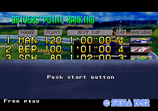 The priority is wrong for the drivers' Point Ranking screen, SEGA EUROPE CIRCULT screen. In according the pcb video: |