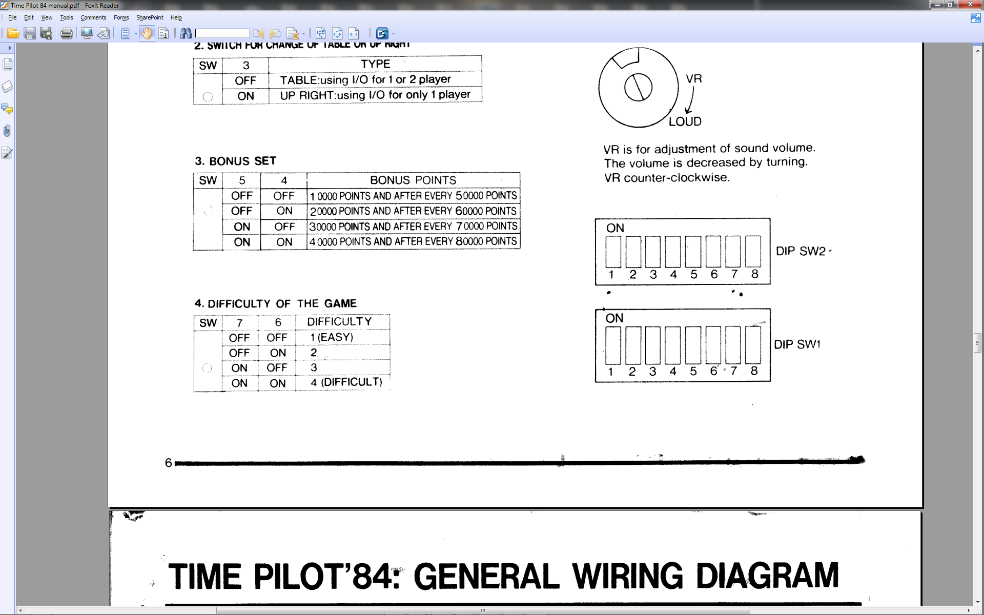 Time Pilot 84 - Difficuly Setting Dip