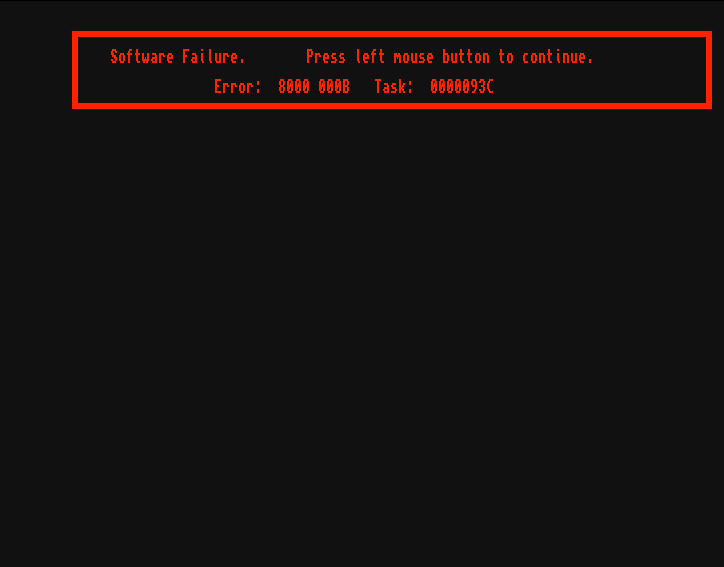 | Description | The State of the Art demo by Spaceballs (ADF, CRC 85E6306E) formerly worked in MESS but now causes a crash with a "Software Failure" screen inside the emulated machine shortly after the start of the demo. | ||||