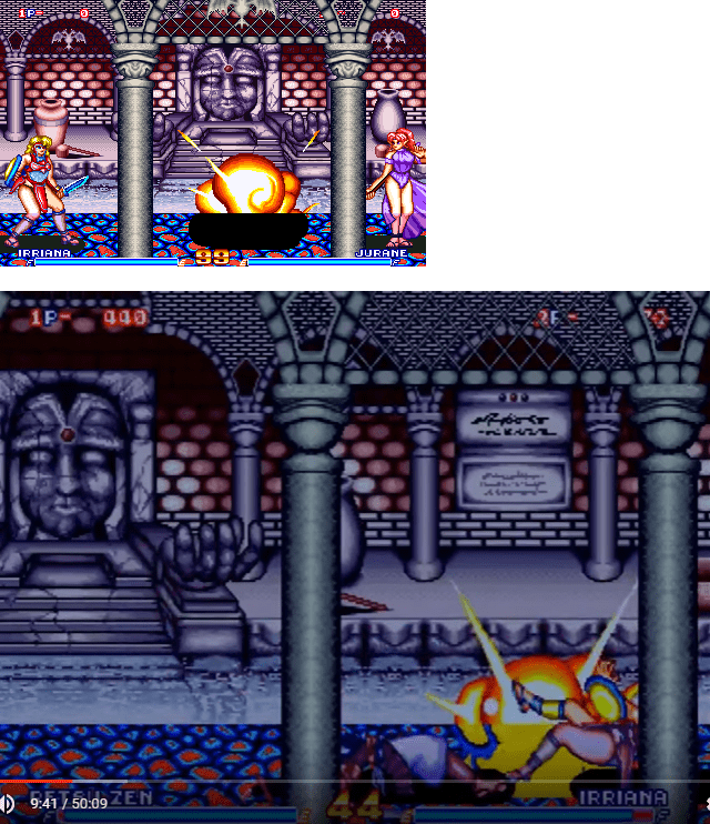 The bottom effect in Jurane stage has been fixed in #00865. However, the colour of magic effect is still wrong. In Mame, the magic explosion has a black area. (See the first image) However, the actual behaviour is a blended colour. (See the second image which is taken from the second video in #06353 at 9:40.) |