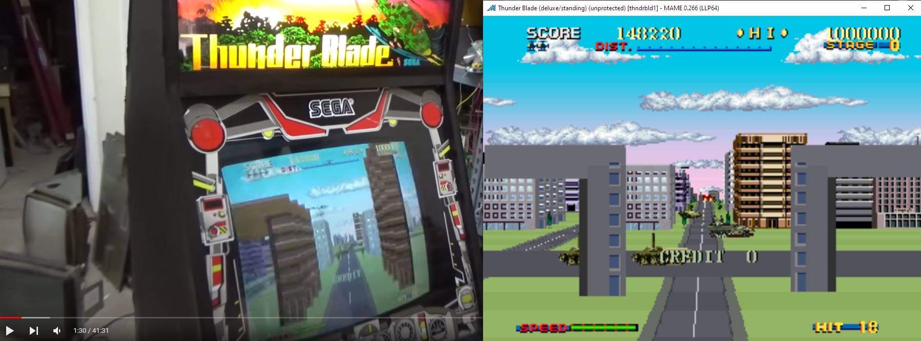 thndrbld1 appears to be less glitchy than the parent set? Fiddling with IRQ emulation or changing CPU interleaving(quantum) does not have any effect. This is not conclusive proof that it's a BTANB, but on this arcade cabinet video of what appears to be a PCB with FD1094, the sprite glitch happens at around the same time as on MAME's unprotected thndrbld1: I'll attach a screenshot. *edit* Ah, this specific glitch does not go away if I overclock the subcpu, so it's not the same as the glitch reported by Yonah |
