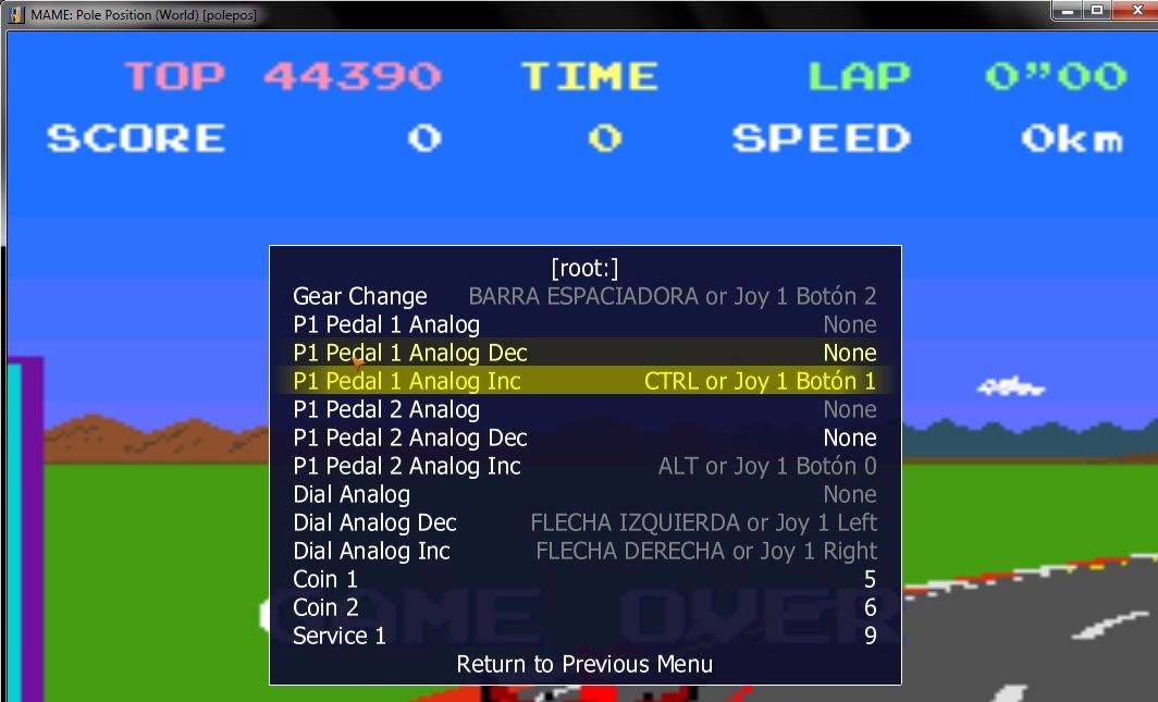 Example using polepos rom (but it happens in another games like outrun, hangon, shangon or toutrun): 1-Play one race lap (after qualification lap) and reach maximun speed of 313KM when completing first lap. 2-Pause the game with P, and save state with Mays+F7 using the key assigned to the acceleration pedal holding it all the time, continue playing. 3-Load the state with the key and keep pressing it. You'll notice the car speed is under 313KM (About 298KM). |