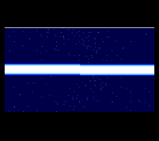 This issue affects the top and bottom lines of the intro frame, the comet's tail and the "BOM" letters in the title logo (note how they shift one pixel down after a brief moment). |