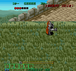 The background layer is missing at the first boss area. The bridge is not showing properly anymore. In the third stage of the game the bug comes again but this time makes the game unplayable due to the pits. |