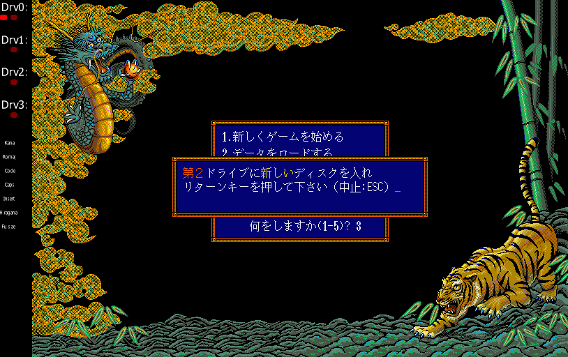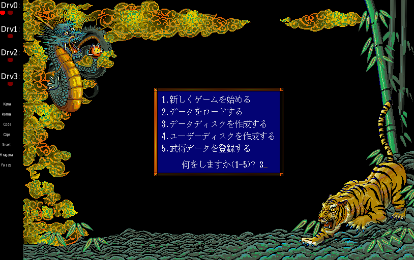 Main menu of Sangokushi 3, To create data disk, press '3' key then press enter key