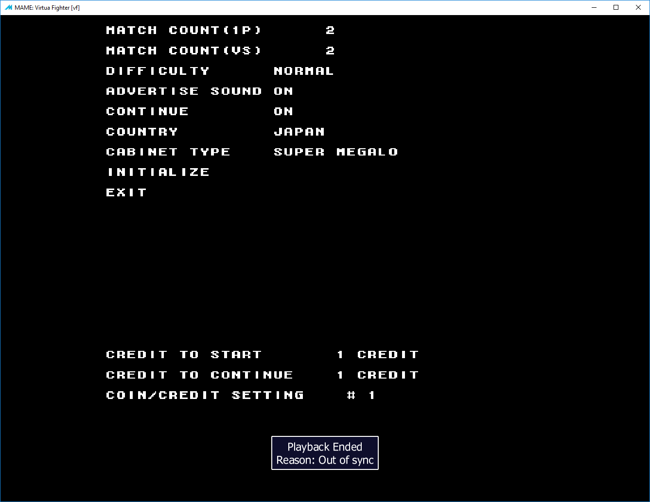 | Description | "Out of Sync" message show at playback start if the INP file was recorded by a previous version of MAME. | ||||