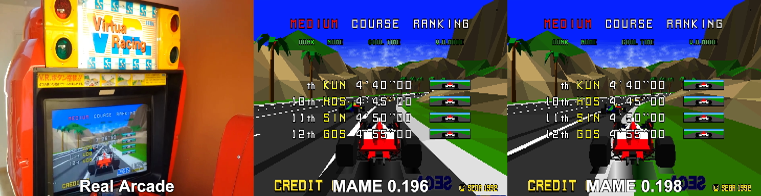 You can delete both images if you want. And no, it's not a timing issue that the car accelerates. Both instances of MAME itself synchronize fine. Decided to test a 4p setup for curiosity's sake and the results were pretty much the same. Gaibert recently did a commit that improved the calculation issues but it isn't fully fixed yet: https://git.redump.net/mame/commit/?id=b51ae75c3ae7b5bb297b27a31b00de603b14220f |