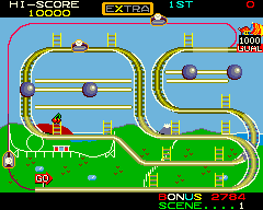| Description | Observe the attract mode. As your player completes the level, the top part of the screen flickers. Interestingly, it does not do this on level 2 (I haven't get got to level 3). | ||||