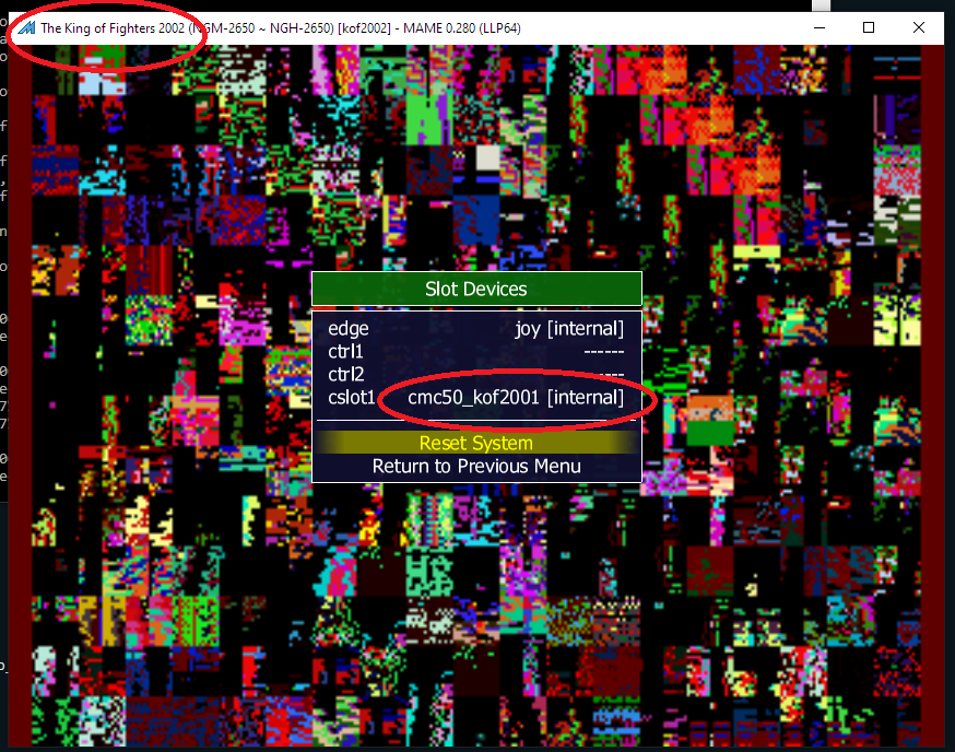 Has anyone found out what this strange error is? Start with: mame kof2001 After "Loading Complete" Press Menu - "Select New System" Type kof2002 + ENTER "Select System BIOS" + ENTER MAME only shows crap... |
