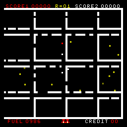 Exiting a blue maze, the game displays the whole stage's mazes system, but all the single mapped mazes lack of the side on the right, maybe due to some bad shifting in the building up of the map itself. The other two known sets (two bootlegs) work fine. |