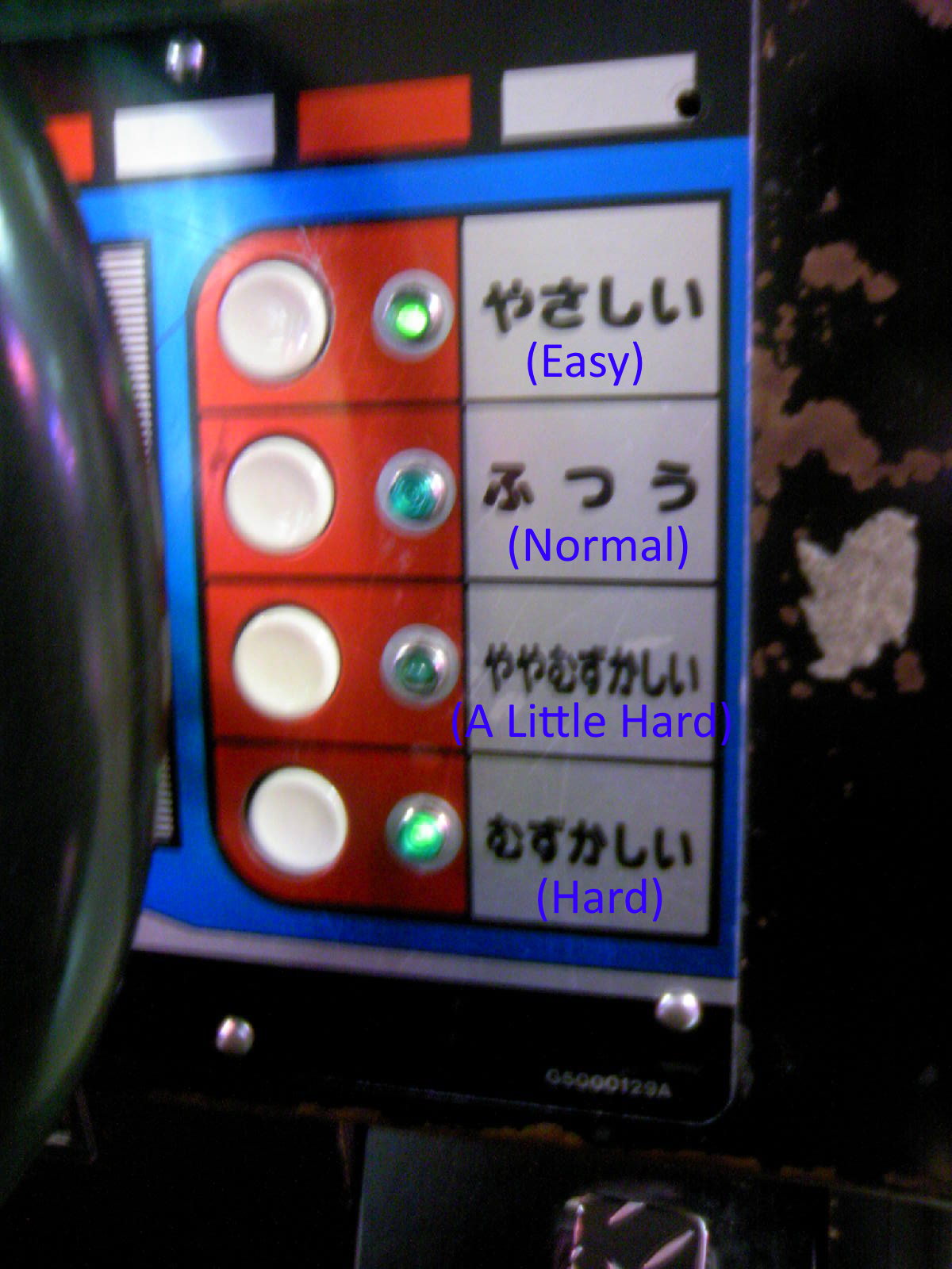 This game has 4 levels of difficulty. but, it does not work correctly because the input is incorrect. The difficulty is more easy as the distance between first two cars is wider. When "Controls" of DIPSW is set to Type-1: Difficulty on DIPSW is not correct and seems to be applys as follows. Setting is "Easy" -> Hard Setting is "Normal" -> Hardest Setting is "Hard" -> Normal Setting is "Hardest" -> Easy When "Controls" of DIPSW is set to Type-2,3,4: Difficulty on DIPSW is not used. Control panel has 4 start buttons, and difficulty is selected on which button is pressed. But, ssrj.cpp defines only one start button and turns on all four buttons at the same time. The correct inputs is follows: PORT "IN2" 0x1 : Easy start button 0x2 : Normal start button 0x4 : A Little Hard start button 0x8 : Hard start button |