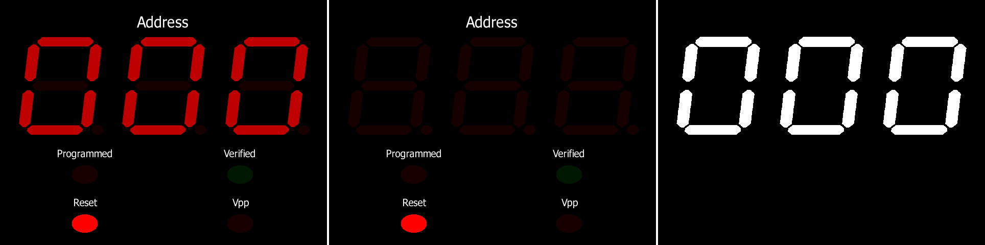 Try moving these 3 lines from machine_start to machine_reset m_digits[0] = s_7seg[(m_addr >> 0) & 0x0f]; m_digits[1] = s_7seg[(m_addr >> 4) & 0x0f]; m_digits[2] = s_7seg[(m_addr >> 8) & 0x0f]; *edit* yeah that was it |
