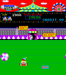 In the 4th event (the jumping on giant rolling balls, marked as hard), after losing a life, sometimes the left "Oh NO!!" sprite is clipped. It can be displayed correctly for 1 frame or appear already cut. |