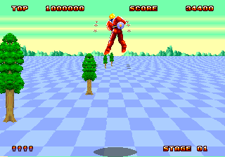 | Description | In any stage of Space Harrier II the bottom row of pixels should be a continuation of the checkerboard ground pattern. Instead bottom row contains colors from the palette used in the sky that vary in no clear pattern as the player moves left/right. Same behavior occurs for JP and PAL machines as well. | ||||