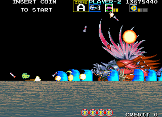 This problem is happening only during Zone D, if you started the game with Player 1, or in Zone U if game started with Player 2 (same rounds, just switched in position). In this zone, the background is missing, the sprites for wall-type objects in the underwater section are missing (collision still works) and, when on surface, the sea hides player and projectiles partially or fully. (See an example screenshot on attachment) EDIT: Among these behaviours, the missing sprites of seabed (walls) are regular on board too. The missing background happens on board too, although while in MAME sometimes we see the sea or the sky underwater, on board there is absolute nothing except for the sea displayed once the boss makes its entrance. The sea also never hides other sprites on board. |