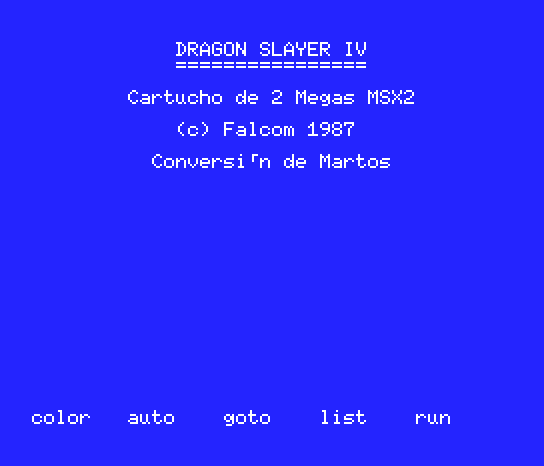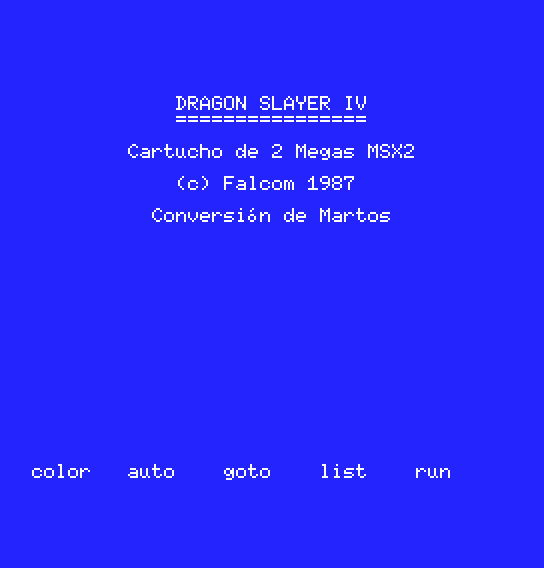 That screen depends on the MSX2 system you use. It might require more memory to at least load correctly. It works for me depending on MSX2 system: > mame canonv30 msx2_flop:dslayer4 shows what you posted and doesn't load > mame hbf700p msx2_flop:dslayer4 shows what I posted and does load. |