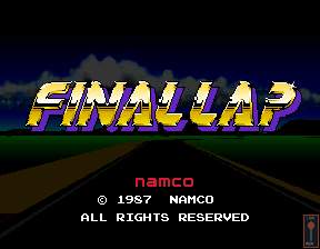 As shown in the background should fade to black while the title screen appears. In MAME it only gets a bit darker. Final Lap 2 should behave the same, though in this case the video only shows the background already black: |