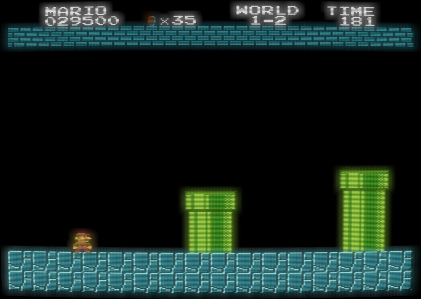-Load any game which preferably has a black background (from bosco to nes galaxian) -Open the slider settings -Turn "Halation amplitude" and "Halation blur width" all the way up |