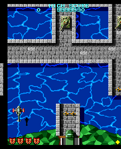 Also the text overlay in Slapfight (I only could test bootleg romsets because my others are incomplete and download site was down) in MAME 0.242 seems to be shifted vertically(?), which is noticeable at the highscore entry field (a frame-shaped sprite with black background?) that is in wrong place. I suspect the text layer to be shifted one character up and left(?) against the intended position. |