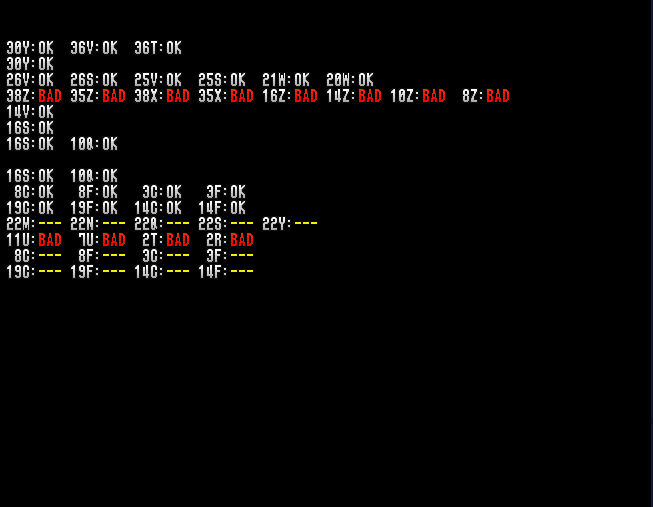 | Description | Game cannot complete its POST properly checking 38z, 35z, 38x, 35x, 16z, 14z, 10z and 8z as bad. Afterwards the game locks with both screens showing colorful jailbars. | ||||