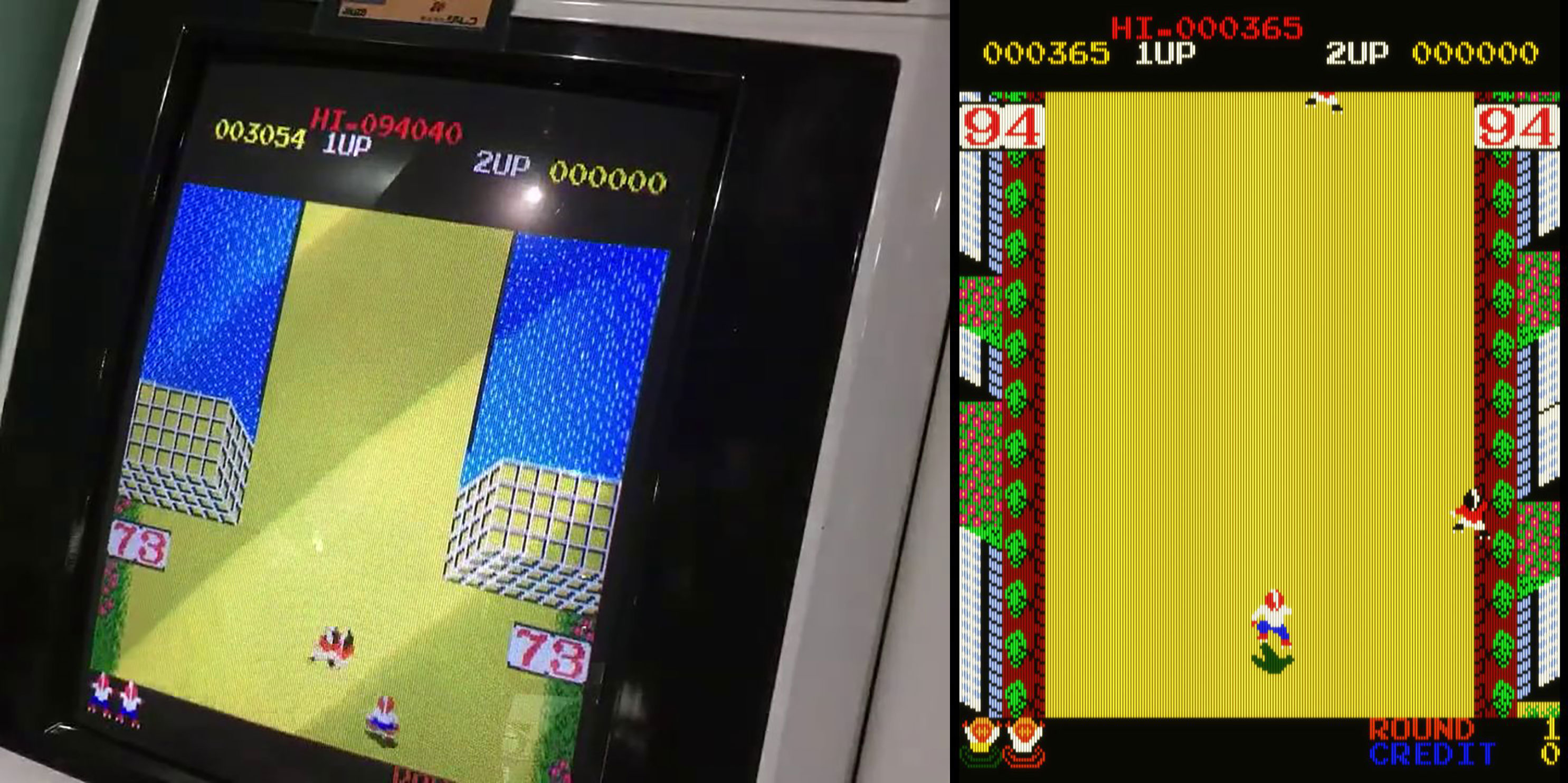 4-way joystick: Possibly. red dots on clouds: Possible bad rom(s) yes. I can also see a problem with the "0" character on the text layer, easy to see when you cycle through colors in MAME's gfx viewer. On the score panel (top part of the screen, see your screenshots) it's like someone took a bite out of it, this is fine on the arcade cab photo. *edit* file 15.h4 byte 0, change 0x30 to 0x38, I'm 100% certain on this one. The rom with the cloud graphics though, supposing it is bad, it's a lot of bits and I wouldn't try doing any modification by hand. The lives colors should be fixed with: https://github.com/mamedev/mame/commit/27442a30b0de1d89b5b6897ddbc314de3ecee74d There's an older pcb recording here: It's not good quality, but you can see the bottom-right corner that was not in view in the other video. |