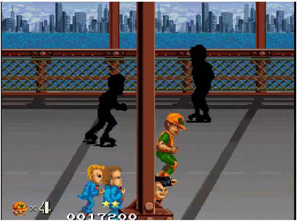 Screenshot 1 show 2 sprites totally in black color. In several moments in gameplay some sprites does an blink between the correct sprite colors and black. Perhaps anyone reply saying that blink is related with cpu character stamina, but if you play not attacking the sprites continue blinking. Screenshot 2 show some wrong graphics in background. That bug happen in others moments in gameplay. |