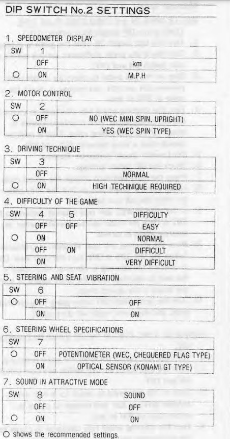 | Description | The Operators Manual on Hot Chase labels most of the DIP Switches while MAME lists them as "Unknown" | ||||
