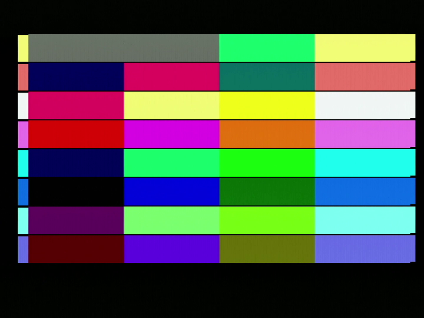 Just did a comparison with real hardware and certain colors seem to appear slightly different than shown in MAME: The main noticeable thing is how those two greens in the next to last row look identical, when the second one (present in the copyright text of Gryzor, for example) should be more vibrant. Also, the peach color in MAME seems kind of shinier than the real thing, so maybe there's other subtle differences? |