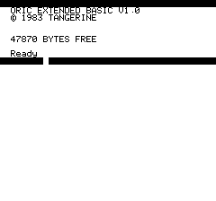 The black bar appears when Tab is pressed. This equates to the ESC key on the real machine. The ORIC-1 Basic manual does not mention this key at all, but the Oric Computer magazine issue 1 says it invokes the next key to choose an attribute. However the reason it appears in MAME is exactly what cuavas said: the Tab key leaked through the menu and got into the emulation. It's a very long-term bug in the UI. |