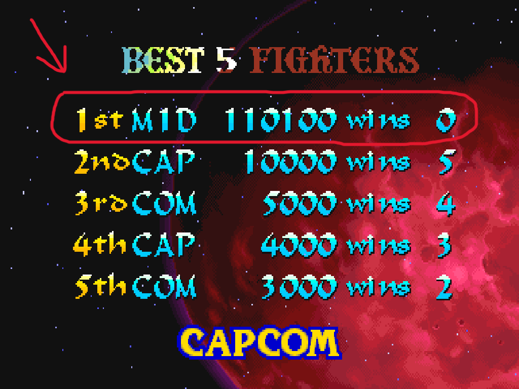 Adding a link to a gameplay video for the Capcom Fighting Collection: Night Warriors: Darkstalkers Revenge (Xbox One Version) Arcade version. Even though it is not the original arcade machine, all of the high scores also show "wins 0":