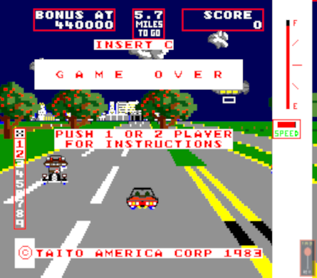 Description It is impossible to make the car go faster than the slowest speed. The manual shows 3 speeds that can be attained (page 11 https://www.arcade-museum.com/manuals-videogames/C/ChangeLanes.pdf ):