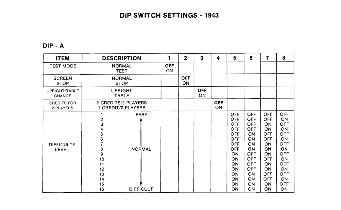 | Summary | 08797: All 1943 games and clones: Cabinet DIP labeled wrong in manual. | ||||