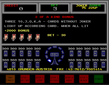 I don't know why it freezes (most likely a MAME bug), but the cause of the game not working was easy enough to find out. The byte in the supplied nvram at 0x110 needs to be changed to 0. This gets the game going. After that, only 7 works as a credit key. I suppose a developer will need to find out why 5 and 6 don't work. There's also bad flickering in the HOLD CARDS AND PRESS START message. |