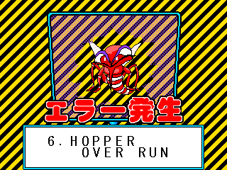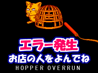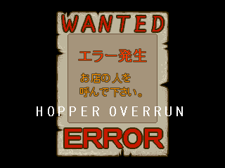 Games affected: Animal Catch (animalc), Hae Hae Ka Ka Ka (haekaka), Hayauchi Gun Kids (gunkids), Itazura Monkey (itazuram), and Pye-nage Taikai (pyenaget) After initializing the backup RAM upon first boot by holding F2 to go to the service menu or clearing the backup RAM on the service menu's Set Mode, exiting the service menu would lead to an error (Hopper Overrun), accompanied by sound effects and Japanese voice lines. |