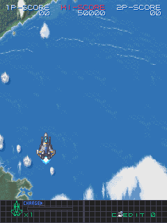 1. Load the game. There is no need to change the region or copyright settings in the DIP switches. 2. Insert a coin, start a game, and choose any ship. 3. Wait until the cutscene ends and the first stage starts, then quicksave there via Shift + F6. 4. Reset the system, then load the state through Shift + F7 at either point (bootup or Visco Games logo). 5. You may see that in-game text and HUD may not display correctly. However, it may fix itself after you defeat the end-of-stage boss and clear the stage. |
