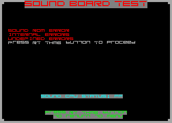 | Description | If you enter test mode and enter the sound board test, the game reports various errors (see screenshots) and locks up shortly after. | ||||