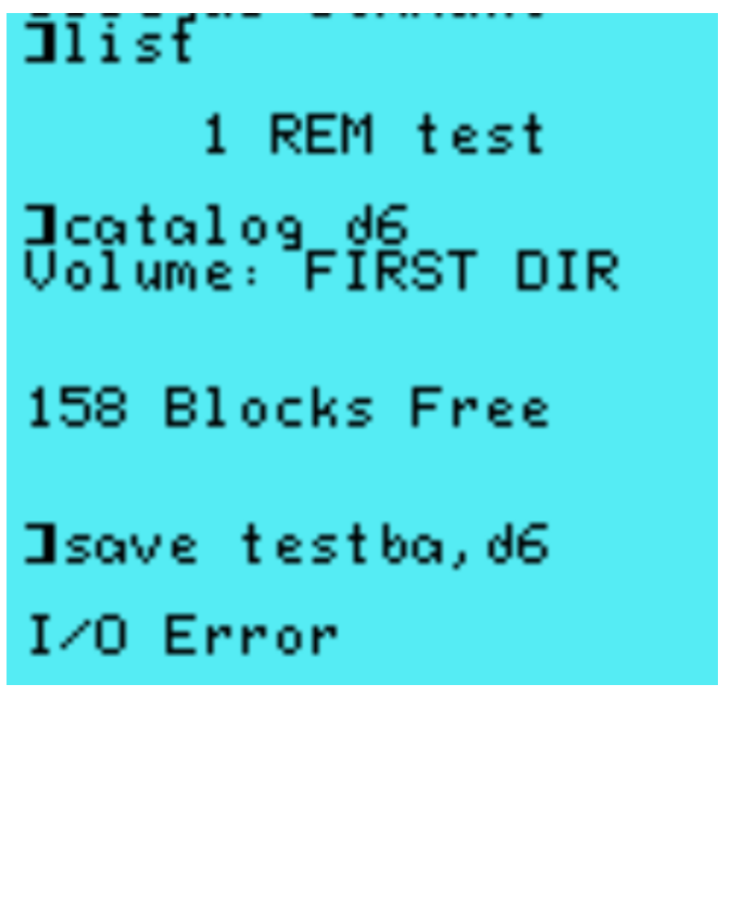 I had to do a crash course on this system before I could confirm the issue. For Smartbasic, I used smartbas10b from the swlist. I then took a copy of this disk (by unzipping the sw item) and called it adam.dsk (but you can call it ssdd.dsk if you want). That saved me having to work out how to create and format a disk, and it would be a guess anyway. So firstly I tried >mame adam smartbas10b -flop2 adam.dsk, this starts basic. You can get a directory with the CATALOG command. Commands are case-insensitive. If you specify a drive, D5 is the first drive (flop1), while D6 is the 2nd drive (flop2). So, CATALOG,D6 to get the directory of the 2nd drive. In Basic, I created a 2-line program, made sure it ran, and typed SAVE test,d6 - and the I/O error appeared. But, maybe loading it via the command-line makes it read-only? I don't know. MAME doesn't ask what you want. So, I started with smartbasic only, then used File Manager to mount the 2nd disk. Now you get asked if you'd like read-only or read-write. So I chose read-write obviously. Tried saving the Basic program again, still got I/O error. So I confirmed the issue. Over to you. |