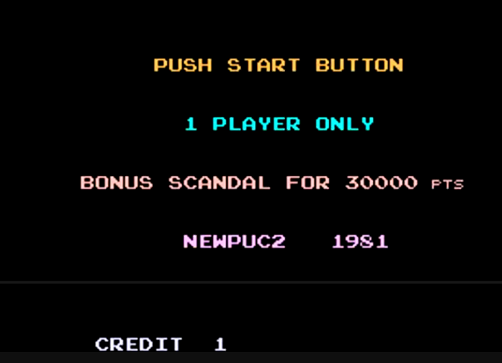 in a hex editor or that line typed in over the rom and then saved, then along with the other files needed to run newpuc2 are loaded into mame and credit the game