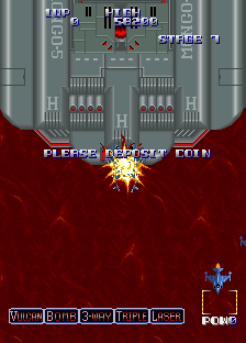 This image is from MAME, but even on the actual PCB, the position of the title logo changes depending on whether screen flipping is on or off. |