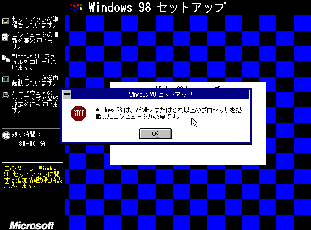 | Summary | 09352: pc9821ap2 [win98se]: PC-98 installer doesn't feel a CPU requirement corresponse. | ||||