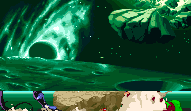 | Description | In the frame immediately before the screen flashes white, sprites become hidden behind the background. This occurs in various situations, such as when a hyper combo hits or during the battle-start effects. | ||||