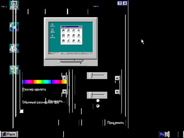 | Summary | 09374: ct486 [Windows 95 OSR 2.1]: Windows 95 picture is broken on a depths more than 4bpp with the svga_dm video card. | ||||