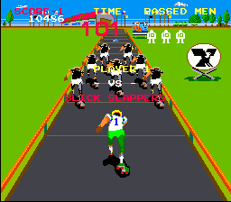 Unfortunately, Roller Jammer got worse with the tubep.c update: now there are various new bugs that weren't in MAME version x, with x equivalent to 0.120u4 > x > 0.101: 1) Enemies sometimes flicker in and out very fast, like a weird raster effect (watch the 2nd runthrough of the attract mode) 2) Enemies far ahead on the road do not show up 3) Signs on the sides of the road rarely appear 4) The last "R" in "JAMMER" on the title is wrong, it's not completely filled in (I can get screenshots of this compared to 0.101 if needed) 5) Enemies start out as blue (1st round enemies), then turn to maroon (2nd round enemies) 2/3 of the way into the attract mode (they're constantly maroon in the attract mode in 0.101) |