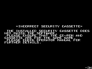 This game is listed as working. Moments after starting, it says INCORRECT SECURITY CASSETTE and will not proceed. |