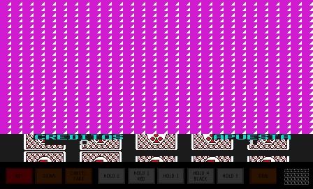 This game is listed as working. When started, the screen is filled with rubbish, with fragments of poker cards visible at the bottom. |