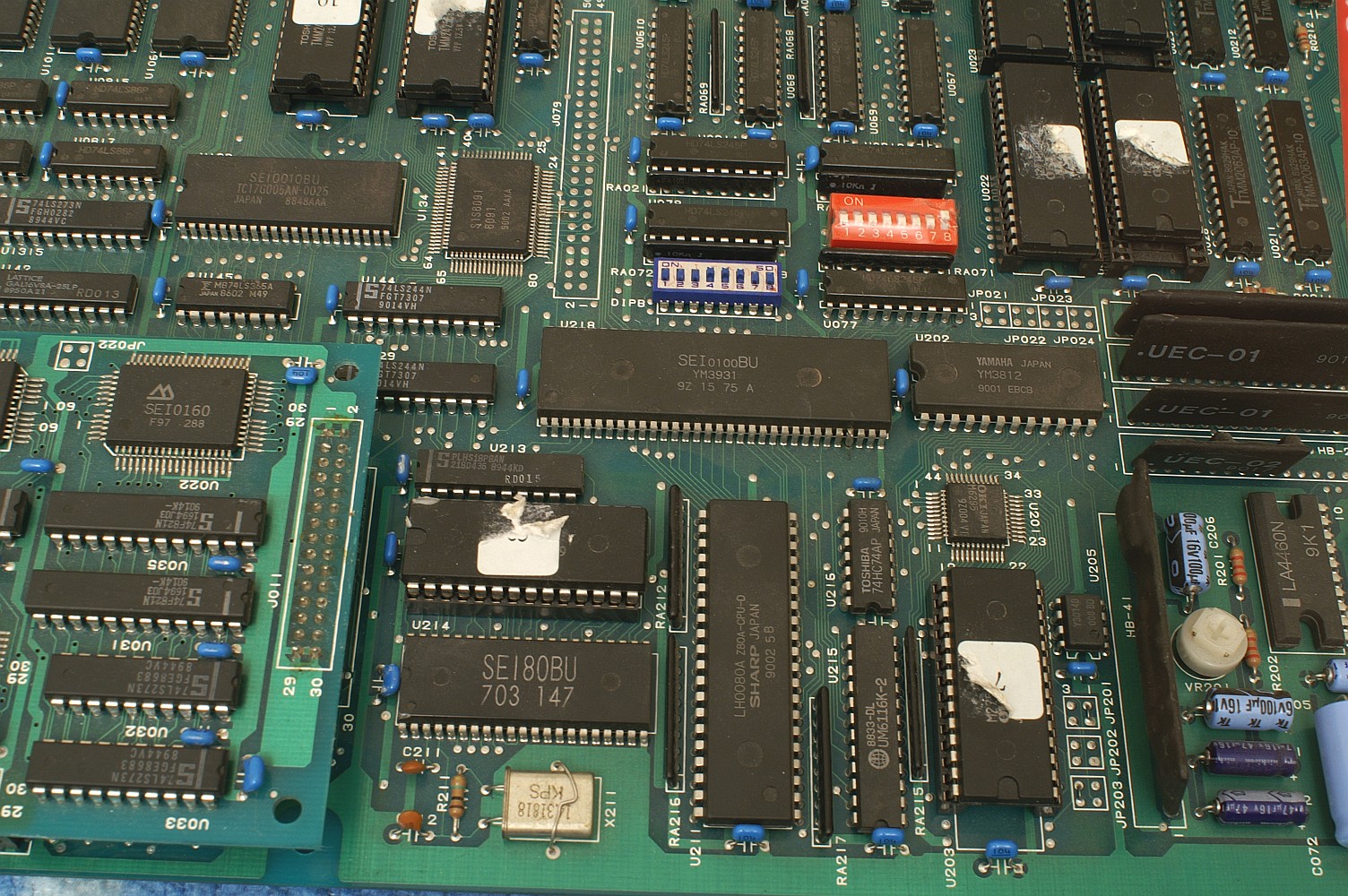 Some music channels go out of sync after a while, it happens eg. when you're about half way through the 1st level. Also happens in earlier versions so it's not related to the 058 slow sound bug. Does not happen with its parent raiden. Update: it does not happen in the half of the first level but right after you start the first level, after maybe 5 seconds. Update by Stefan in 0.104u7: This is a "bug probably not a bug". I did some recordings from my PCB which should be the "alternate hardware" version by comparing the roms. I think the sound rom on my PCB is bad, i dumped it several times and got the same checksum but because of this problem i checked many more times and i do get different checksums when dumping the sound rom. It must be bad since other OKI 27512 read fine from my PCB. I guess its likely an older version. My pcb have more "fixes" than the leg on YM3931 chip, but these things are common on early revison PCB's and are fixed at factory. My conclusion is that the soundrom is bad since my PCB behaves just like the "alt. set" in Mame and i have verified that the soundrom on the PCB is bad (getting differnt checksums when reading multiply times). There is no romtest in Raiden afaik. Follow-up by Kold666: I have a Raiden (alt) version pcb and the sound rom ( number 8 ) is the same as the Taiwan set. If I put the sound rom from the (alt) set in mame I get the same out of sync drums on the pcb! So I think the sound rom in alt set is a bad dump |