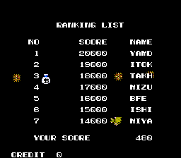 | Description | Once you lose your last life, any object not in the background shows up on the high score and continue screens. | ||||